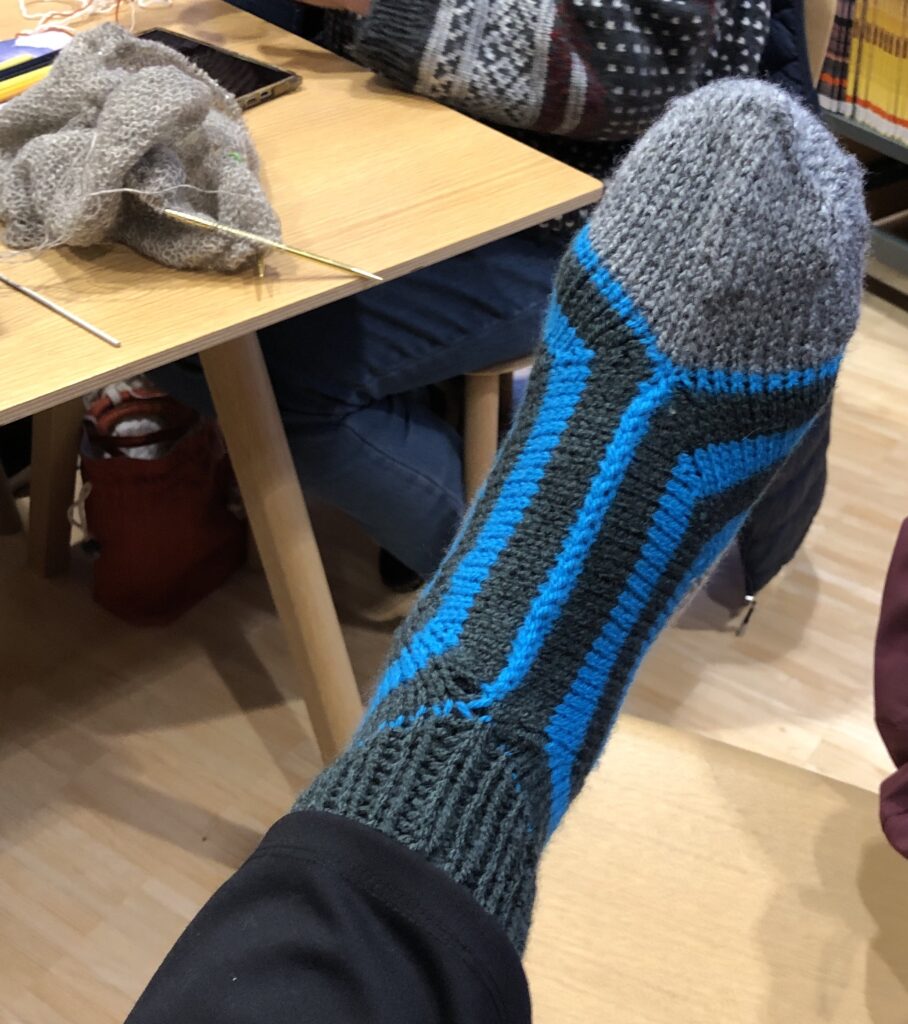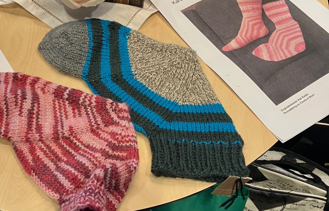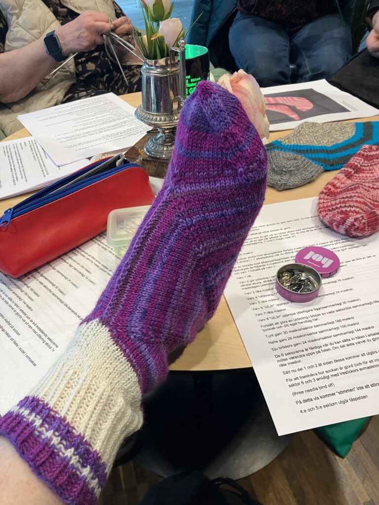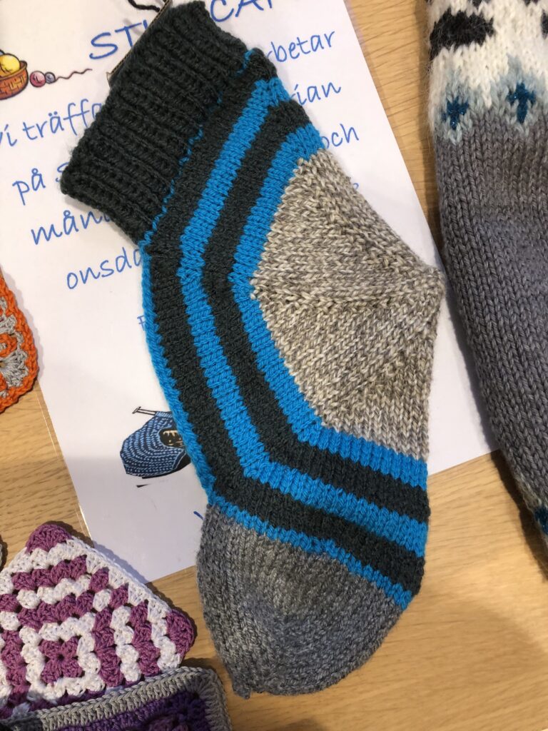 Nyfiken på hur man gör denna socka med bra passform? Kom till slöjdbutiken den 11 mars så visar Irja och Christina hur man gör